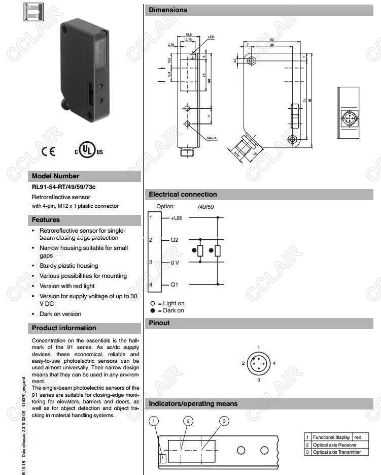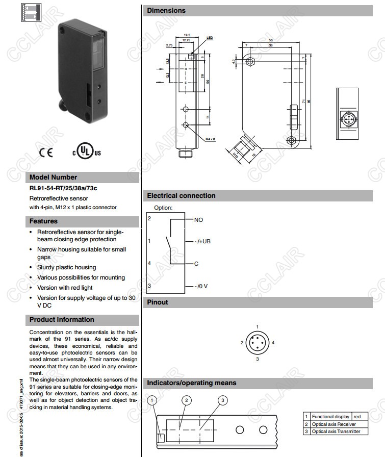 RL91-54-RT/25/38a/73c,RL91-54-RT/49/59/73c,反射板型傳感器