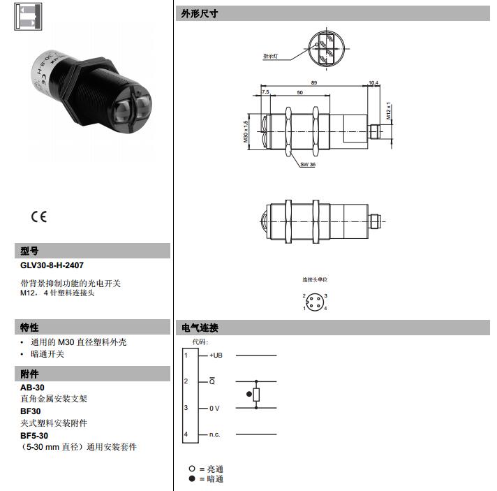 GLV30-8-H-2407,漫反射型傳感器
