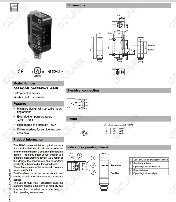 OBR7000-R100-2EP-IO-V31-1R-IR,反射板型光電開關(guān)