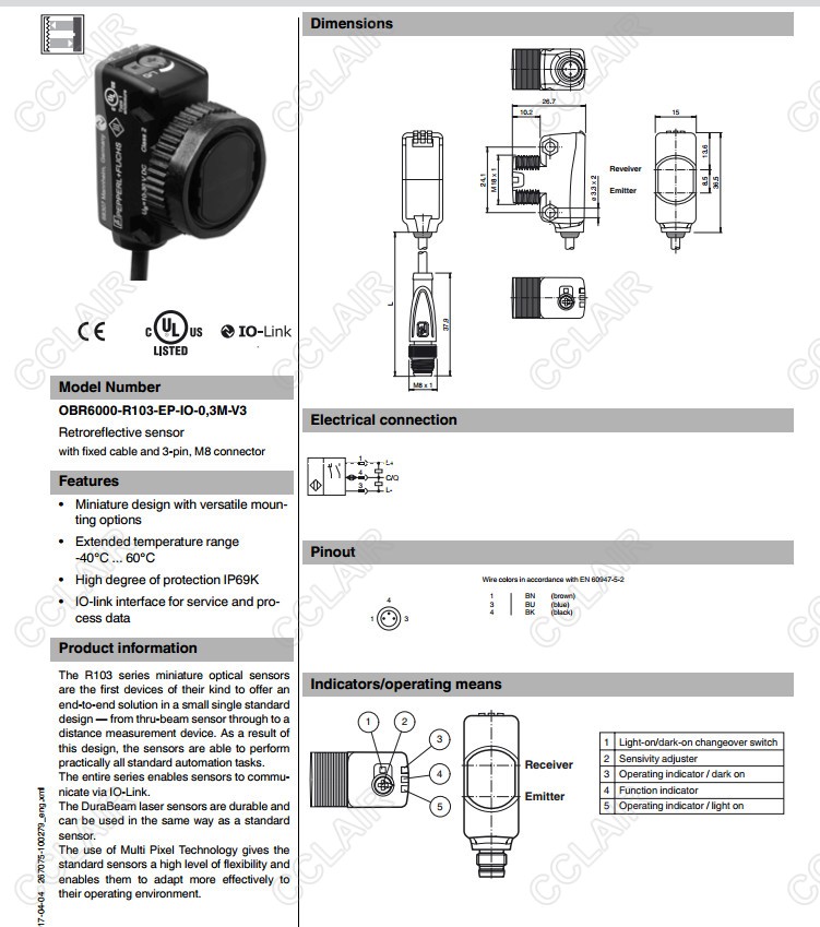 OBR6000-R103-EP-IO-0,3M-V3,反射板型傳感器