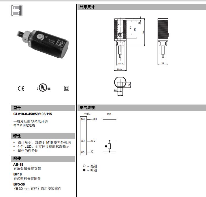 GLV18-8-450/59/103/115,漫反射型傳感器