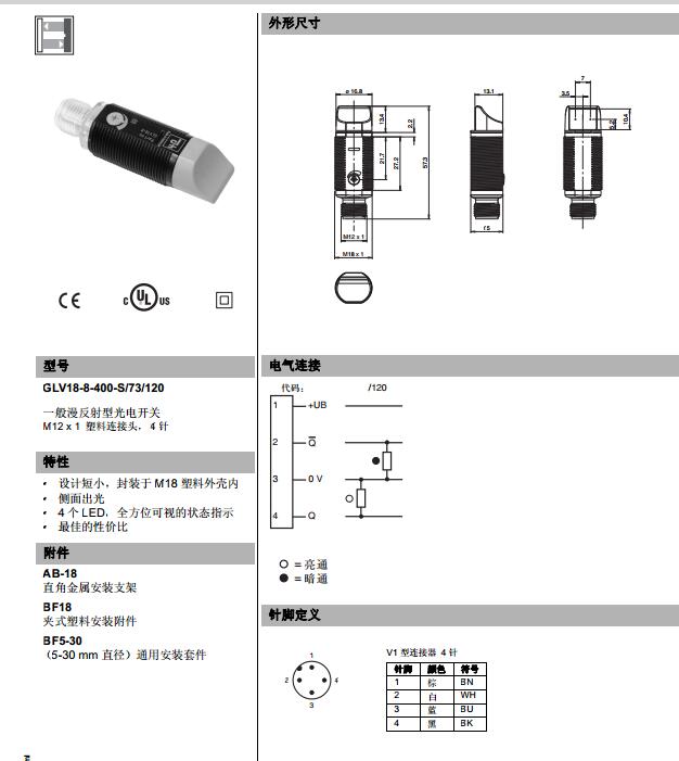 GLV18-8-400-S/73/120,漫反射型傳感器