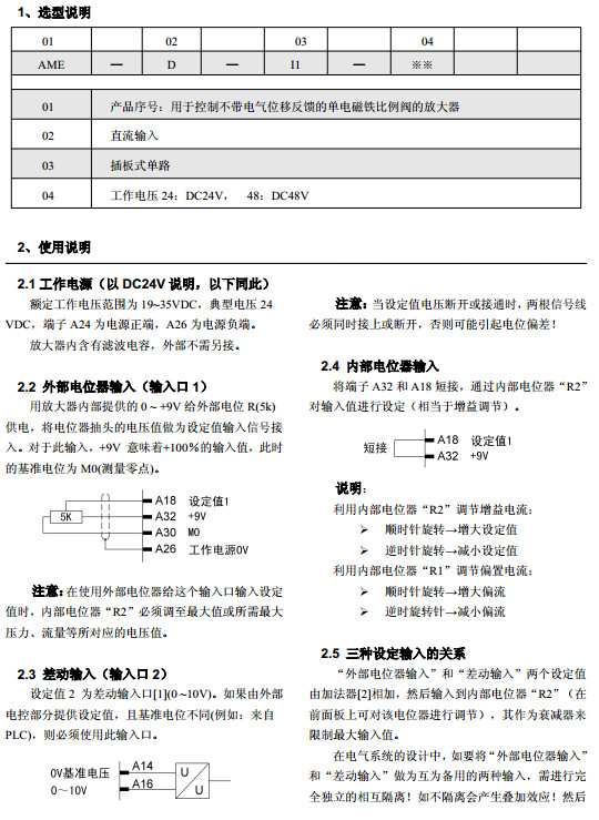 AME-D-I1-24,AME-D-I1-48比例放大器