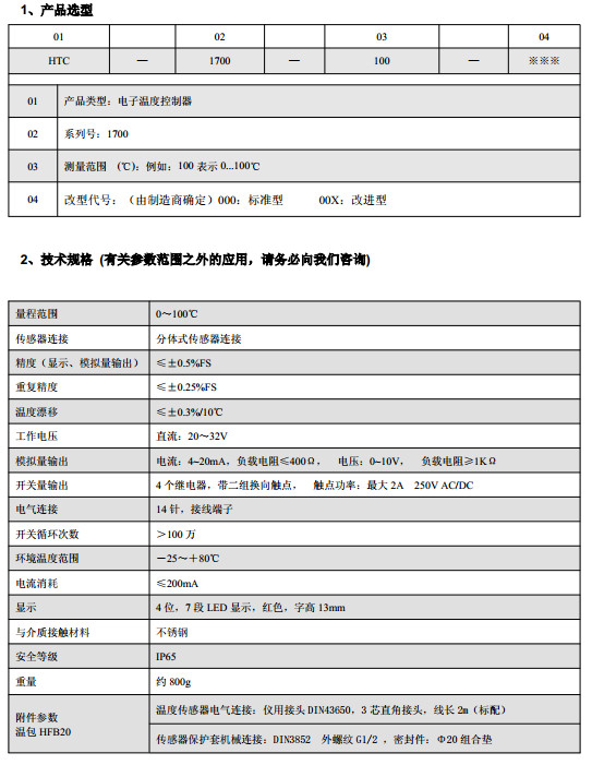 HTC-1700-100-000,HTC-1700-100-00X智能電子溫度控制器