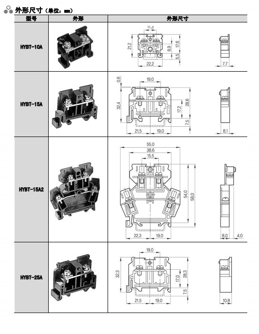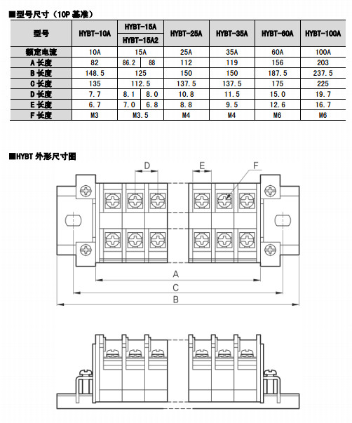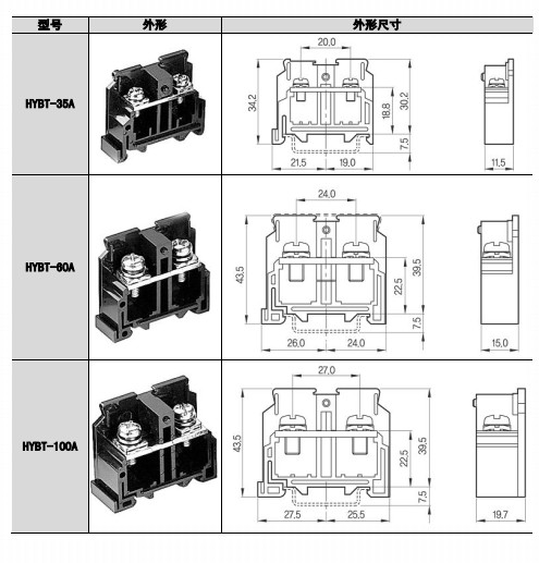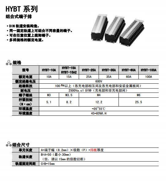 HYBT-10A,HYBT-15A,HYBT-15A2,HYBT-25A,HYBT-35A,HYBT-60A,HYBT-100A,組合式端子排