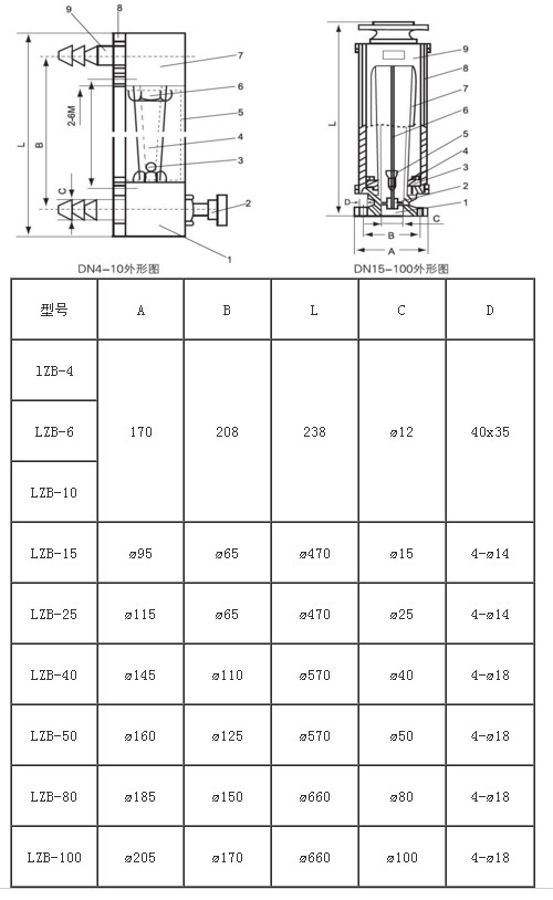 LZB-4,LZB-6,LZB-10,LZB-15,LZB-25,LZB-40,LZB-50,LZB-80,LZB-100,玻璃轉子流量計