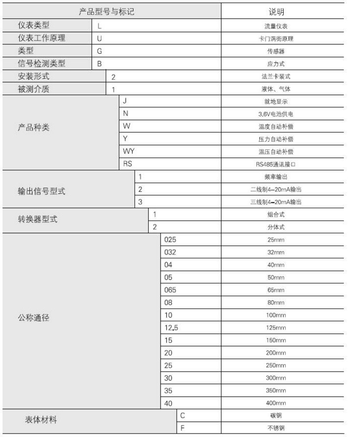 | 型號(hào) D N/mm | 標(biāo)準(zhǔn)測(cè)量范圍 | 型號(hào) DN/mm | 析準(zhǔn)測(cè)量范圍 | ||