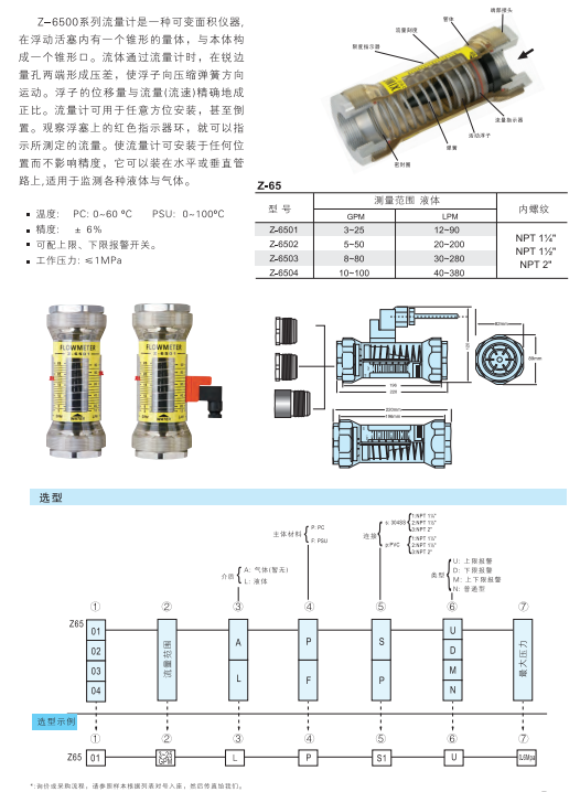 型號: Z-6501,Z-6502,Z-6503,Z-6504,水平流量計