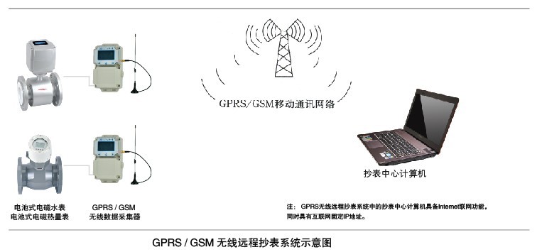 GPRS/GSM無線遠(yuǎn)程抄表系統(tǒng)是利用中國移動(dòng)通訊公司的網(wǎng)絡(luò)進(jìn)行數(shù)據(jù)無線傳輸,實(shí)現(xiàn)流量、監(jiān)控的系統(tǒng)。該系統(tǒng)通過GPRS無線通訊方式或GSM短信的方式,遠(yuǎn)程讀取水表、流量計(jì)或熱量數(shù)據(jù),從而實(shí)現(xiàn)足不出戶監(jiān)控全局,可以大大提高管理水平,降低管理成本。