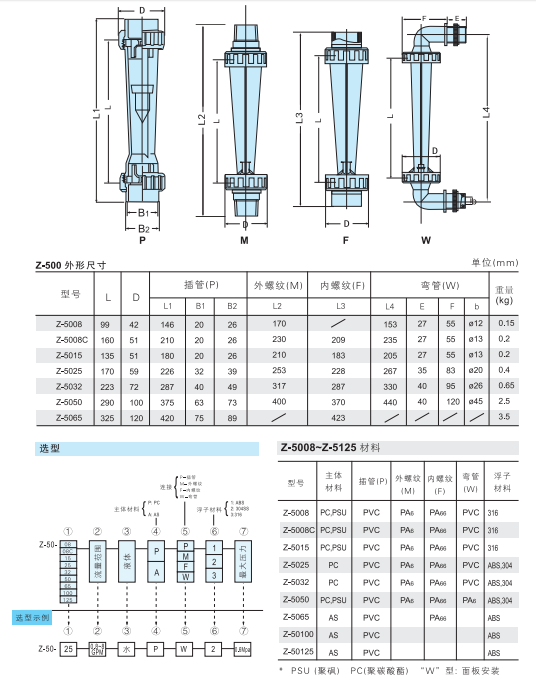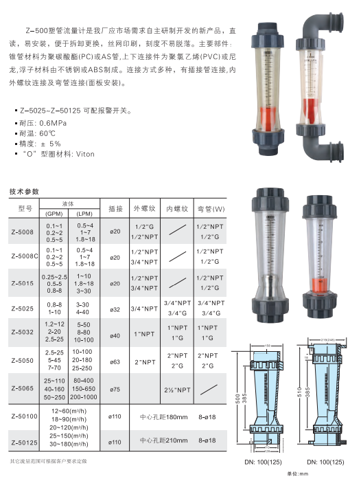 Z-5008,Z-5008C,Z-5015,Z-5025,Z-5032,Z-5050,Z-5065,Z-50100,Z-50125,塑管流量計(jì)