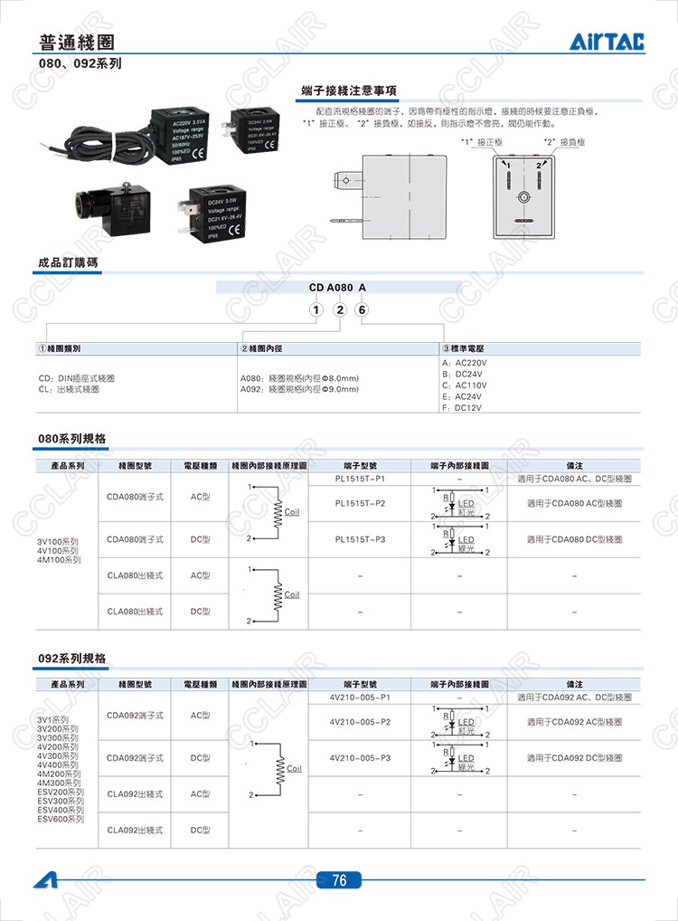 CDA080A,CDA080B,CDA080C,CDA080E,CDA080F,CLA080A,CLA080B,CLA080C,CLA080E,CLA080F,AIRTAC電磁閥線(xiàn)圈
