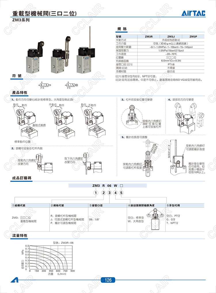 ZM3R-06,ZM3J-06,ZM3P-06,ZM3R-06-W,ZM3J-06-W,ZM3P-06-W,AIRTAC重載型機械閥