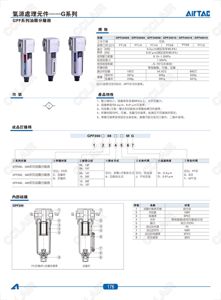 GPF20006M,GPF20006D,GPF20008M,GPF20008D,GPF30008M,GPF30008D,AIRTAC油霧分離器