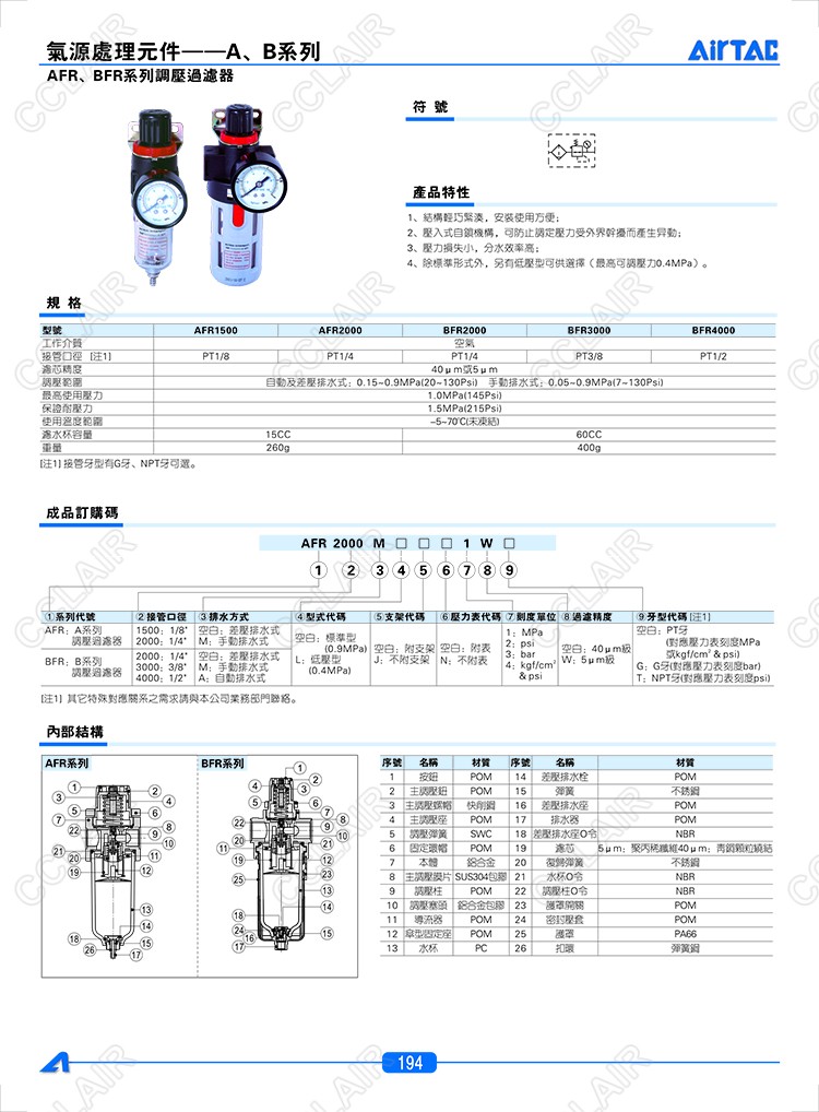 AIRTAC亞德客 調(diào)壓過(guò)濾器AFR1500,AFR1500M,AFR2000,AFR2000M,BFR2000,BFR2000M,BFR2000A,BFR3000,BFR3000M,BFR3000A,BFR4000,BFR4000M,BFR4000A