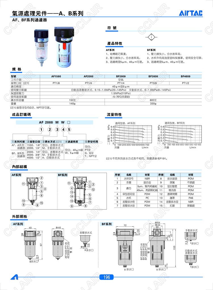 AF1500,AF1500M,AF2000,AF2000M,BF2000,BF2000M,BF2000A,AIRTAC過濾器