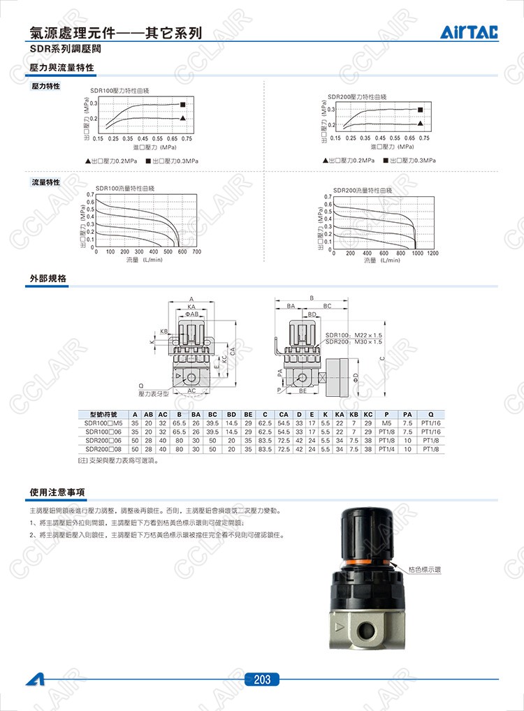 SDR100-M5,SDR100-06,SDR200-06,SDR200-08,SDR100L-M5,AIRTAC調(diào)壓閥
