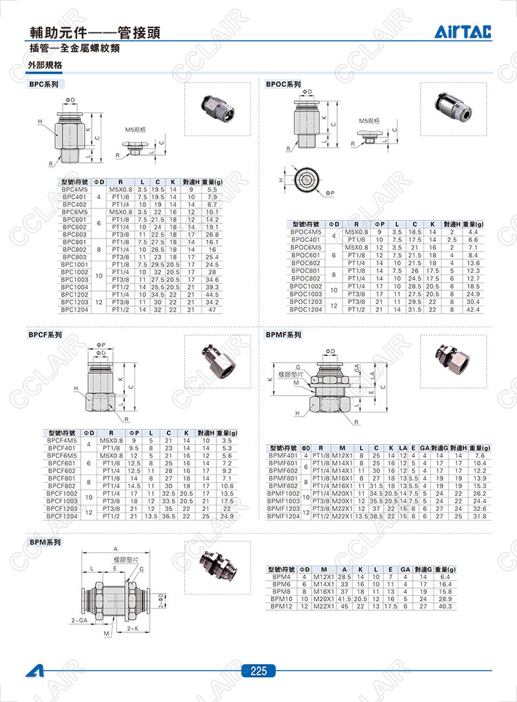 BPC4M5,BPC401,BPOC4M5,BPOC401,BPCF4M5,BPCF401,BPMF401,BPMF601,BPM4,BPM6,臺(tái)灣AIRTAC管接頭