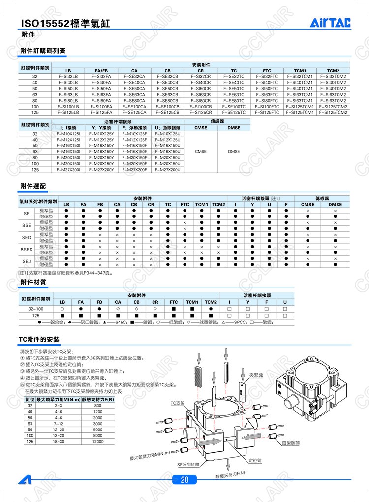 LB32,CA32,FA/FB32,CB32,CR32,TC32,FTC32,TCM132,TCM232,AIRTAC亞德客標(biāo)準(zhǔn)氣缸附件
