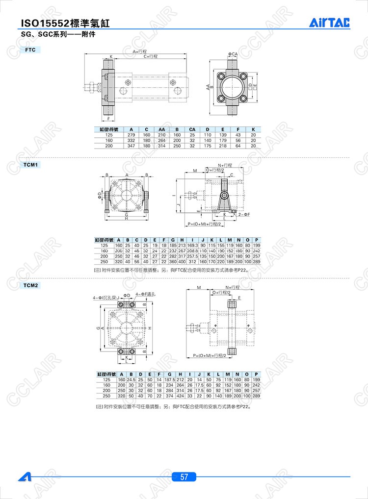 LB125,CA125,FA/FB125,CB125,TC125,CR125,FTC125,TCM1125,TCM2125,AIRTAC亞德客標(biāo)準(zhǔn)氣缸附件