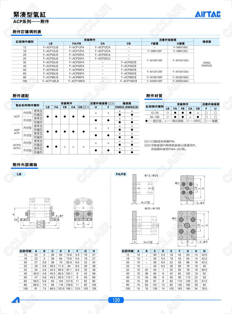LB12,LB16,LB20,FA/FB12,FA/FB16,CA12,CA16,CA20,AIRTAC亞德客緊湊型氣缸附件