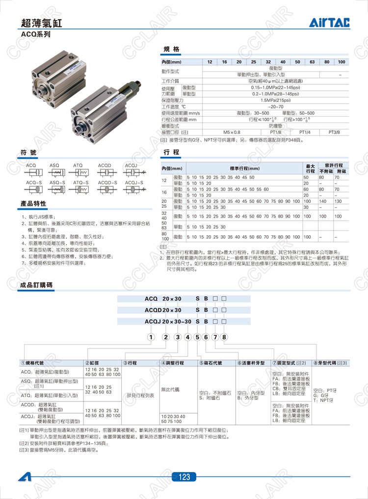 ACQ12*5,ACQ12*5-S,ASQ12*5,ASQ12*5-S,ATQ12*5,ACQD12*5,ACQJ12*5,AIRTAC亞德客超薄氣缸