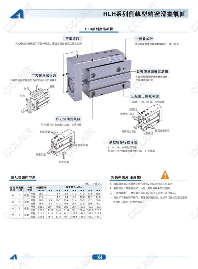 HLH6*5-S,HLH6*10-S,HLH6*15-S,HLH6*20-S,HLH6*25-S,AIRTAC亞德客側(cè)軌型精密滑臺氣缸
