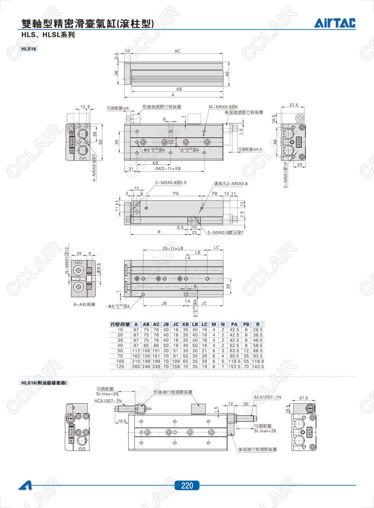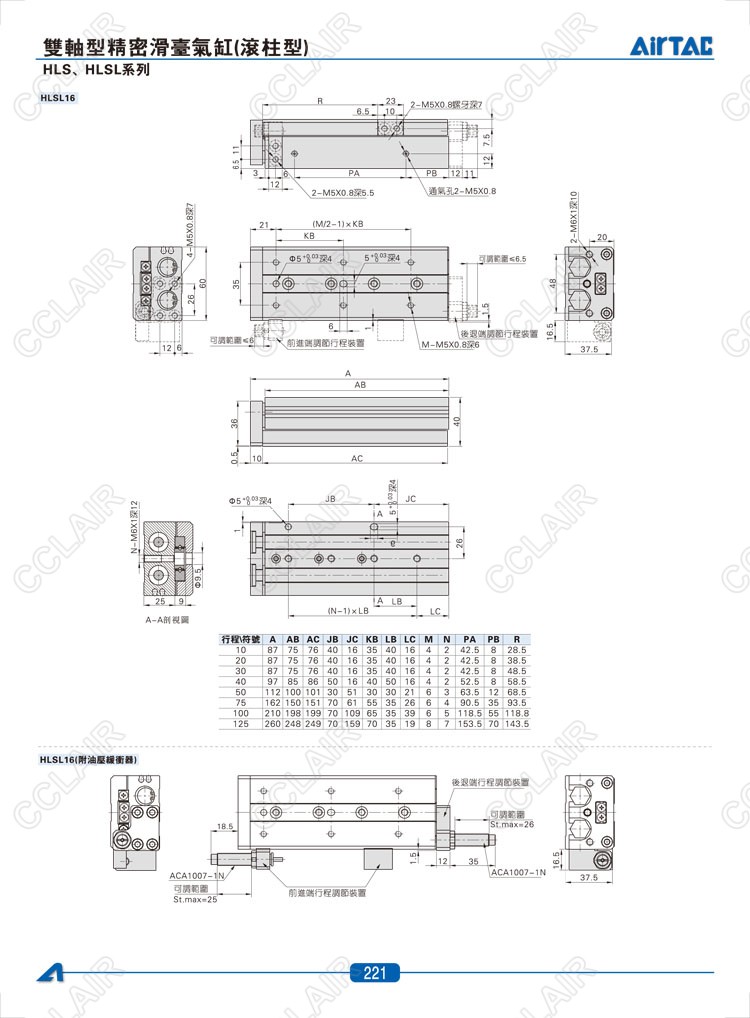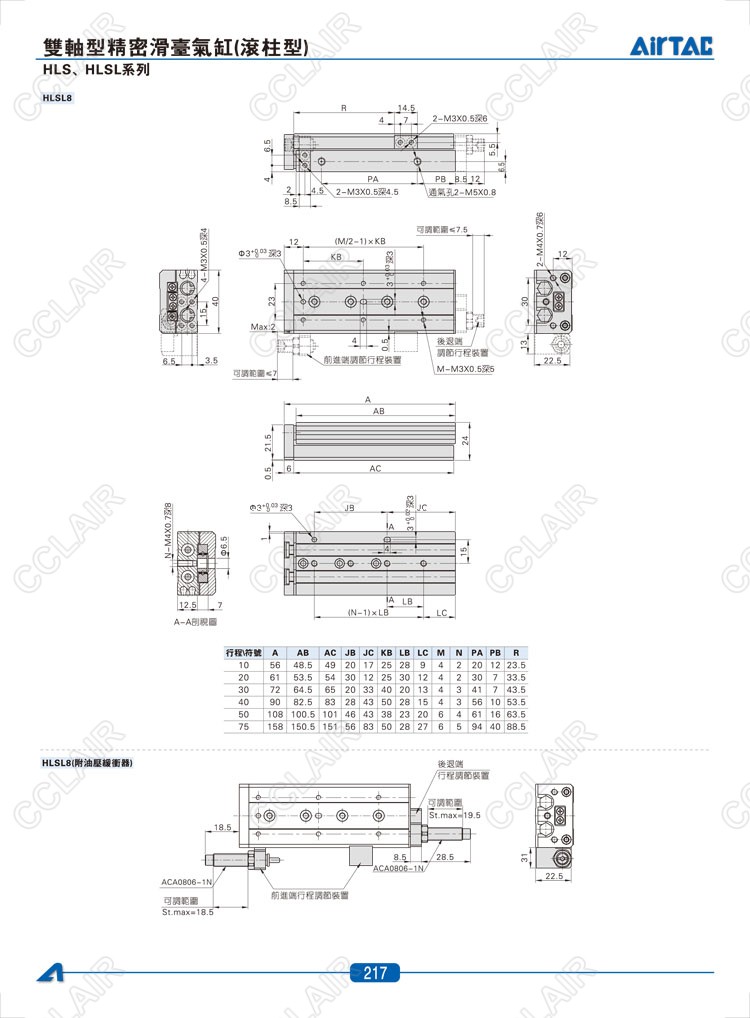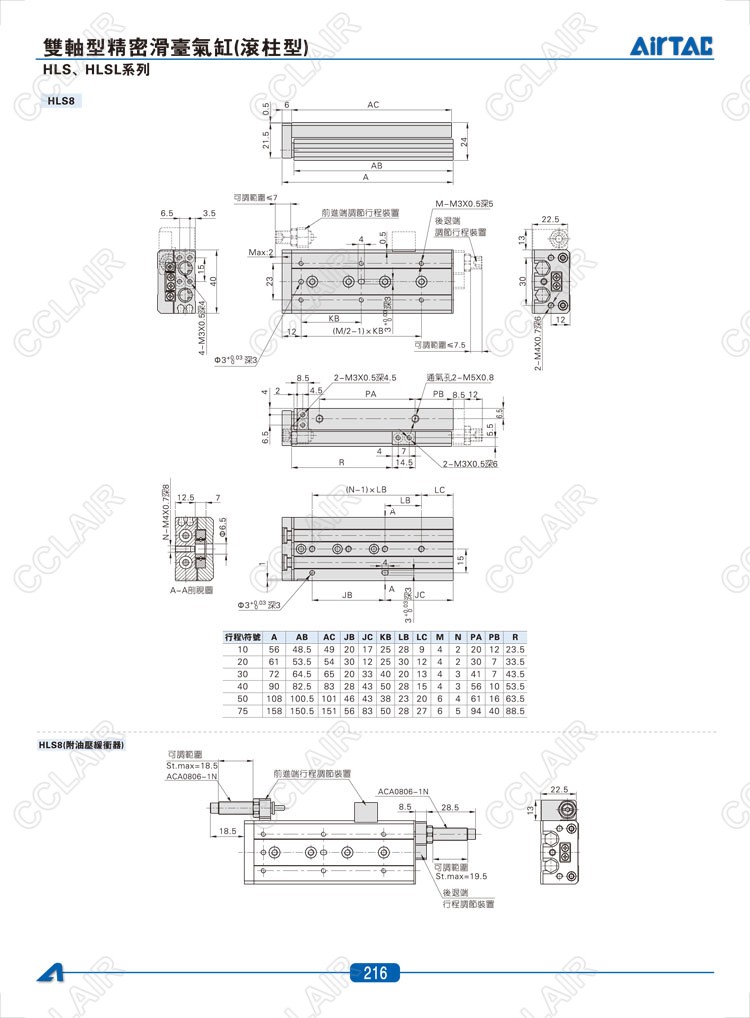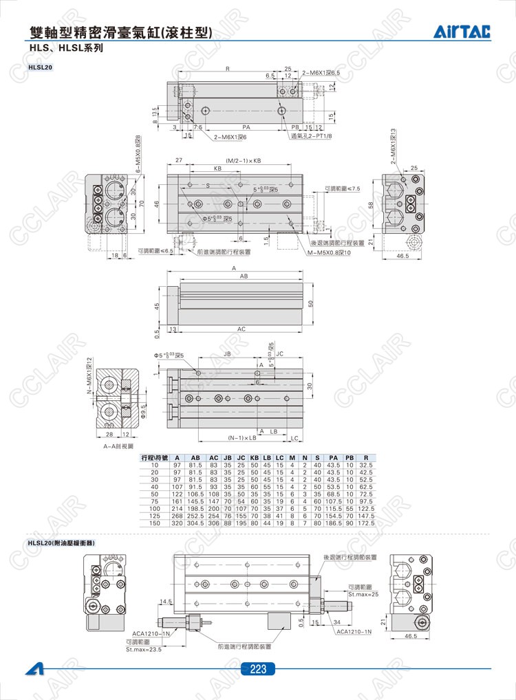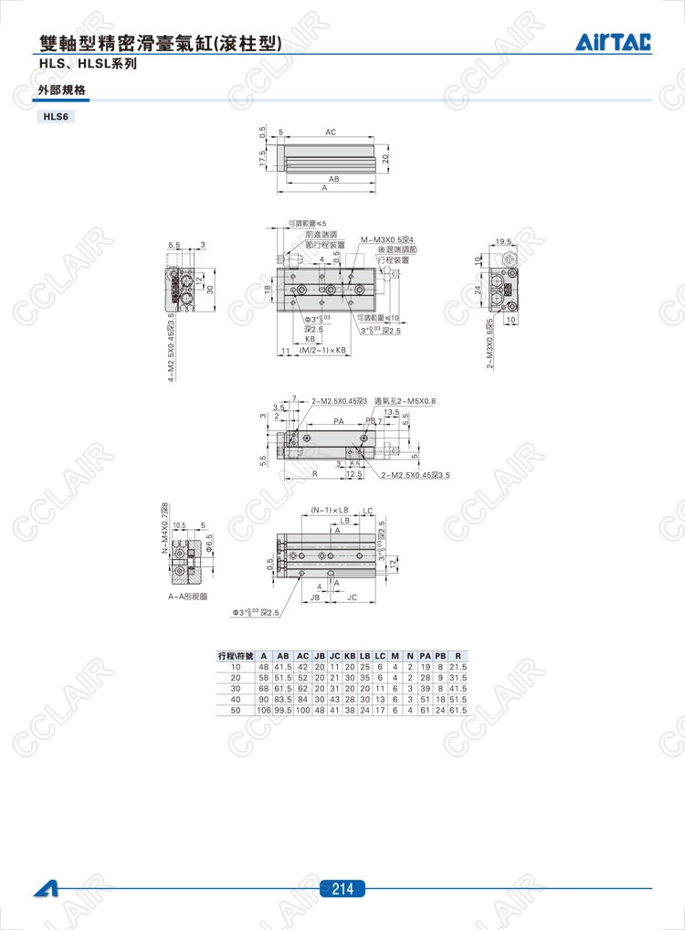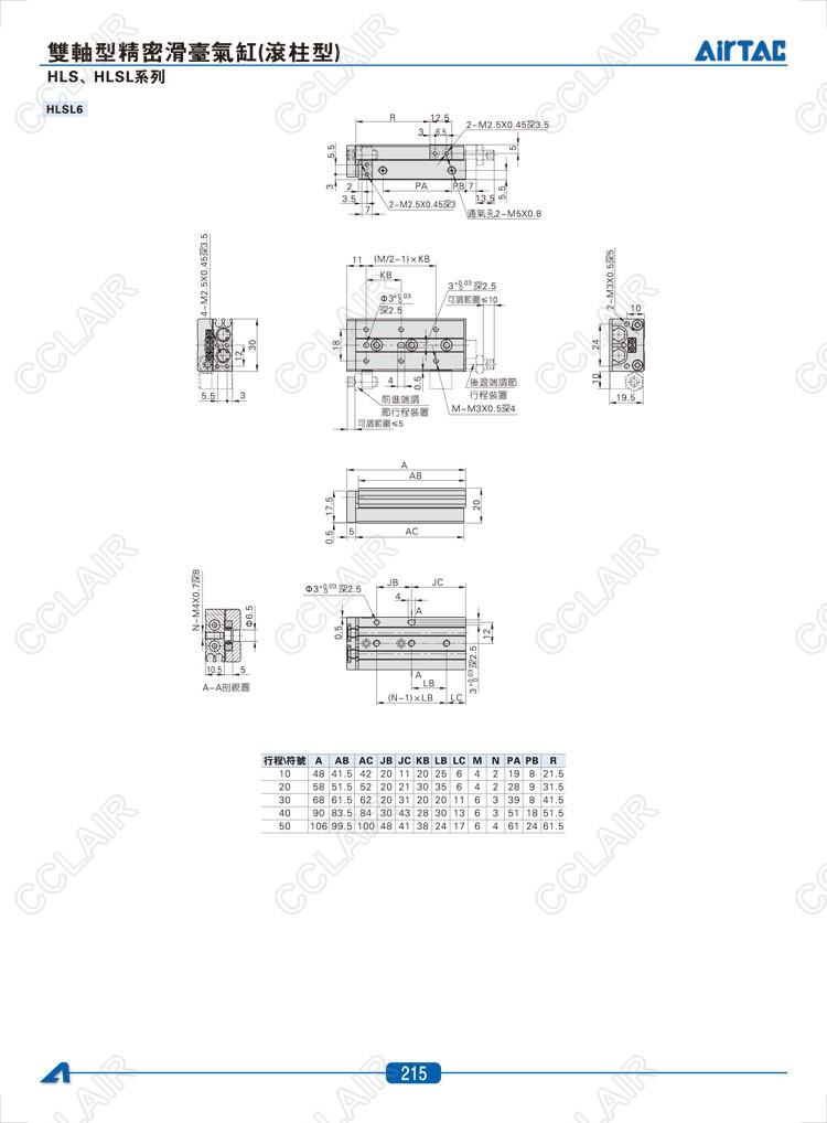 HLS6*10-S,HLS6*20-S,HLS6*30-S,HLSL6*10-S,HLSL6*20-S,HLSL6*30-S,AIRTAC亞德客雙軸型精密滑臺(tái)氣缸