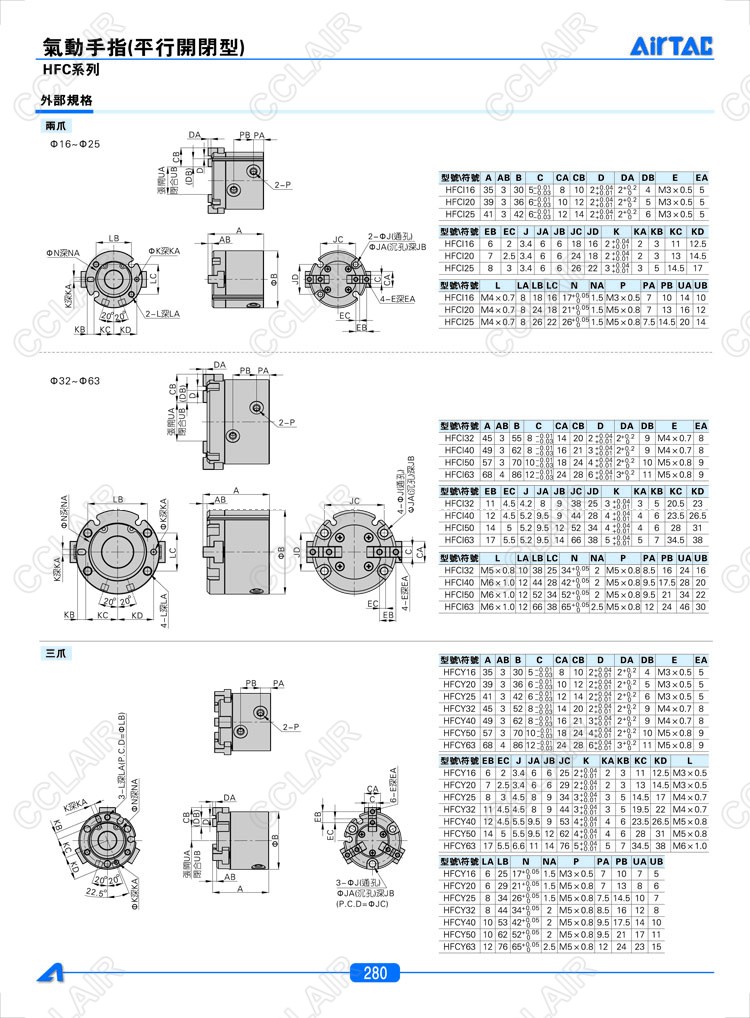 亞德客AIRTAC,HFCI16,HFCI20,HFCY25,HFCY32,HFCX40,HFCX50,氣動(dòng)手指