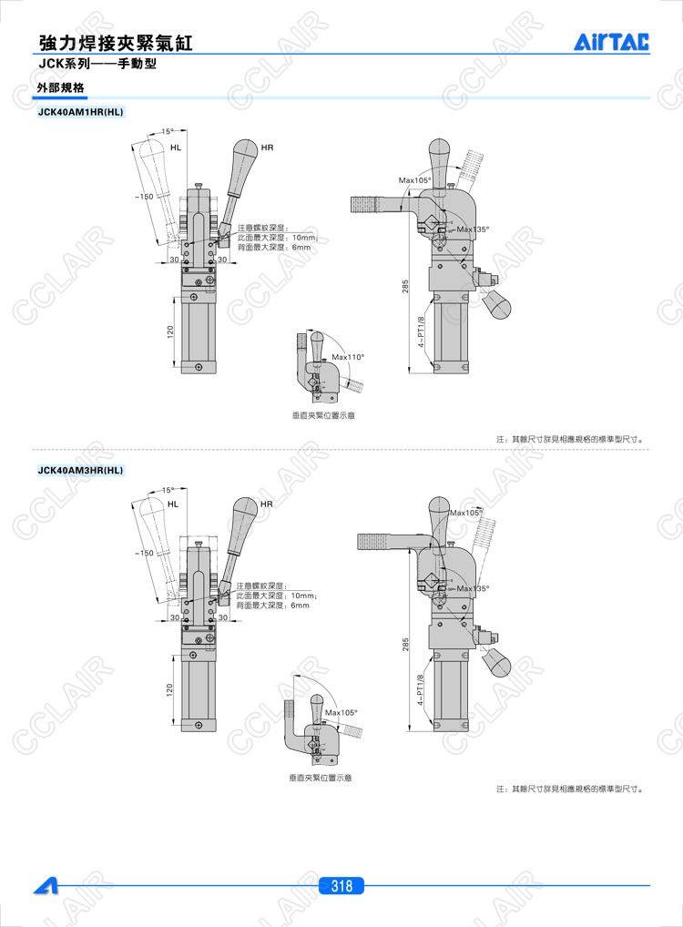 亞德客AIRTAC,JCK40*15AM1R,JCK40*15AM1C,JCKV40*15AM1R,JCKV40*15AM1C,JCKV40*15AM1L,焊接夾緊氣缸-手動(dòng)型