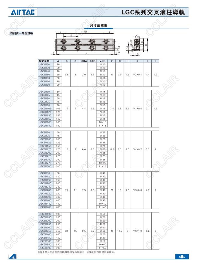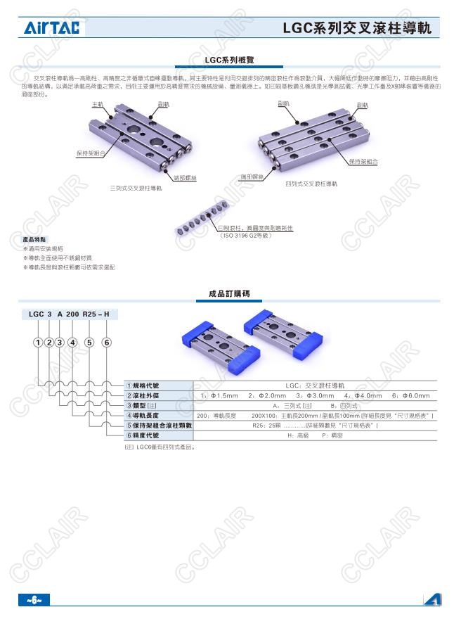 亞德客AIRTAC,LGC1A20,LGC1A30,LGC2A30,LGC2A45,LGC3A50,LGC3A75,LGC4A80,LGC4A120,交叉滾柱導軌