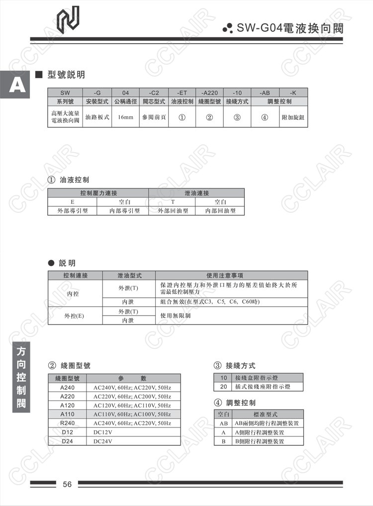 Northman北部精機(jī),電磁換向閥SW-G04-C2-ET-A240-10-K,SW-G04-C2M-ET-A220-10-AB-K,SW-G04-C3-ET-A120-20-A-K,SW-G04-C40-ET-A110-20-A-K,SW-G04-C60-ET-D24-10-A-K,SW-G04-C5BS-ET-D24-20-B-K, SW-G04-C9S-ET-A240-10-K,SW-G04-C5S-ET-D12-20-K