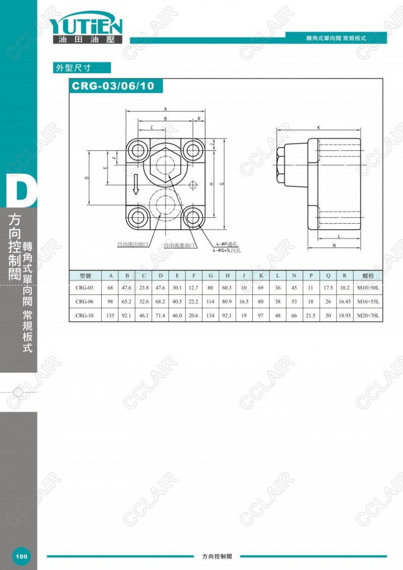 YUTIEN油田轉(zhuǎn)角式單向閥CRG-03-05,CRG-03-50,CRG-06-05,CRG-06-50,CRG-10-05,CRG-10-50