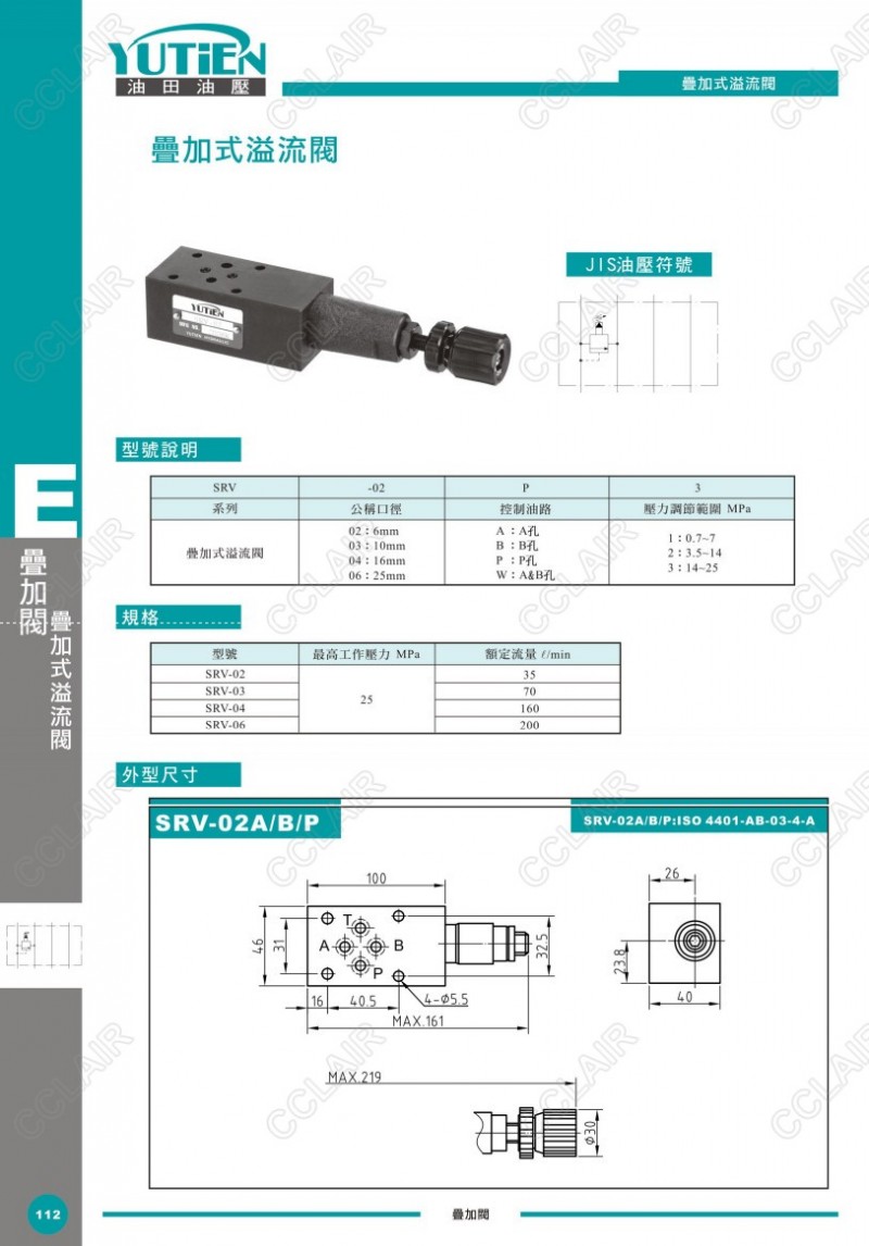 YUTIEN油田 疊加式溢流閥SRV-02,SRV-03,SRV-04,SRV-06