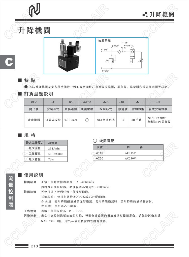 Northman臺灣北部精機,升降機閥KLV-T03-A115-NC-10-M-N,KLV-T03-A115-NC-10-M,KLV-T03-A230-NC-10-M-N,KLV-T03-A230-NC-10-M