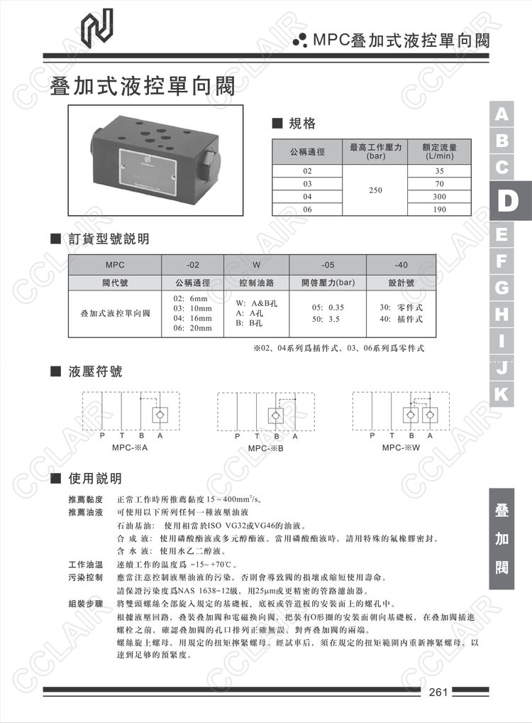 Northman臺灣北部精機(jī),疊加式液控單向閥MPC-02-W-05-30,MPC-02-W-05-40,MPC-02-B-50-30,MPC-02-B-50-40,MPC-04-W-05-30,MPC-04-W-05-40,MPC-06-W-50-30,MPC-06-W-50-40,MPC-06-B-05-40,MPC-06-B-50-30,MPC-06-B-50-40