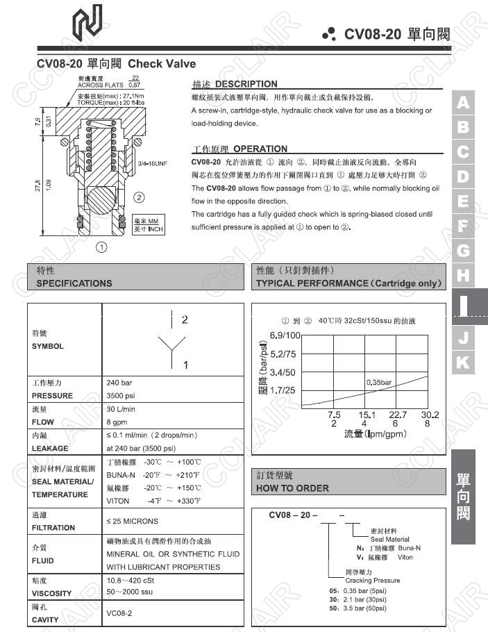 Northman臺灣北部精機,單向閥CV08-20-05-N,CV08-20-05-V,CV08-20-30-N,CV08-20-30-V,CV08-20-50-N,CV08-20-50-V