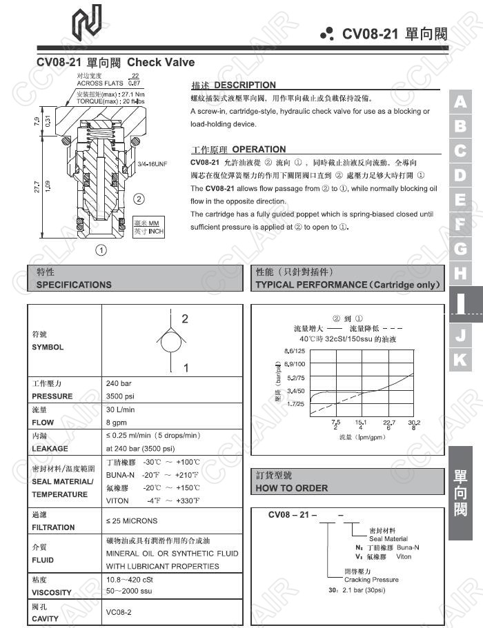 CV08-21-30-N,CV08-21-30-V,Northman臺(tái)灣北部精機(jī),單向閥