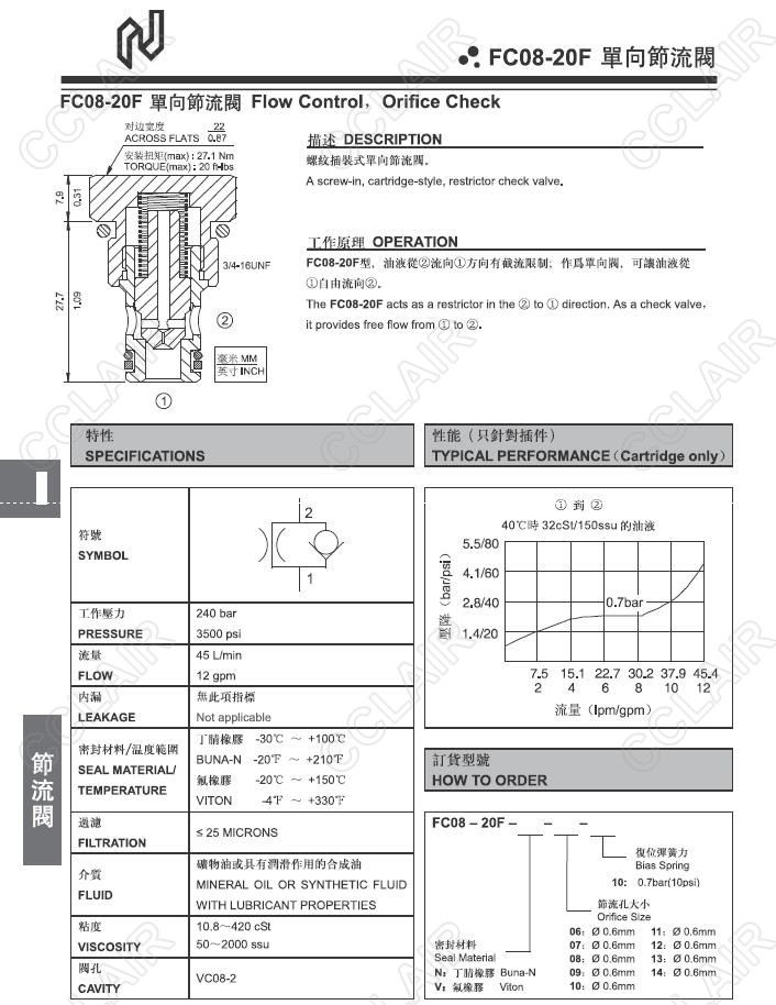 Northman臺(tái)灣北部精機(jī),單向節(jié)流閥FC08-20F-N-06-10,FC08-20F-N-07-10,FC08-20F-N-08-10,FC08-20F-N-09-10,FC08-20F-N-10-10,FC08-20F-N-11-10,FC08-20F-N-12-10,FC08-20F-N-13-10,FC08-20F-N-14-10