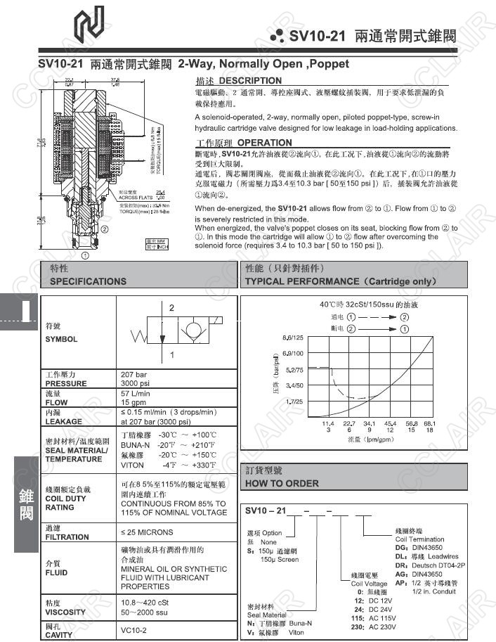Northman北部精機,兩通常開式錐閥SV10-21S-N-0-DG,SV10-21S-N-0-DL,SV10-21S-N-0-DR,SV10-21S-N-115-DR,SV10-21S-N-115-AG,SV10-21S-N-115-AP,SV10-21S-V-12-DG,SV10-21S-V-12-DL,SV10-21S-V-230-AG,SV10-21S-V-230-AP