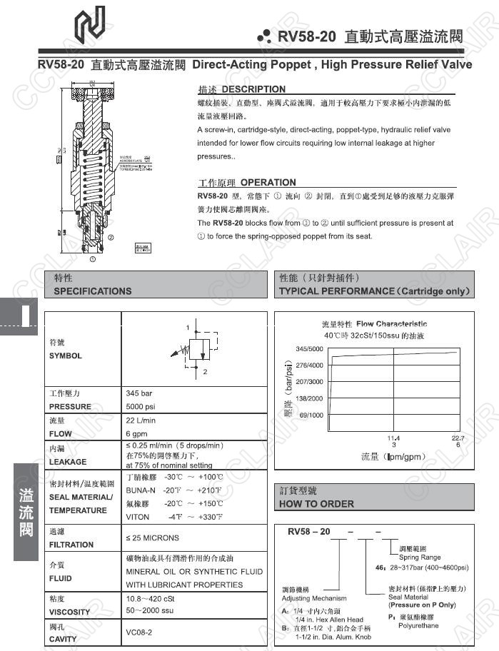 Northman北部精機,直動式高壓溢流閥RV58-20A-P-46,RV58-20B-P-46
