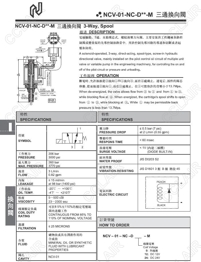Northman臺灣北部精機,三通換向閥NCV-01-NC-D0-M,NCV-01-NC-D12-M,NCV-01-NC-D24-M