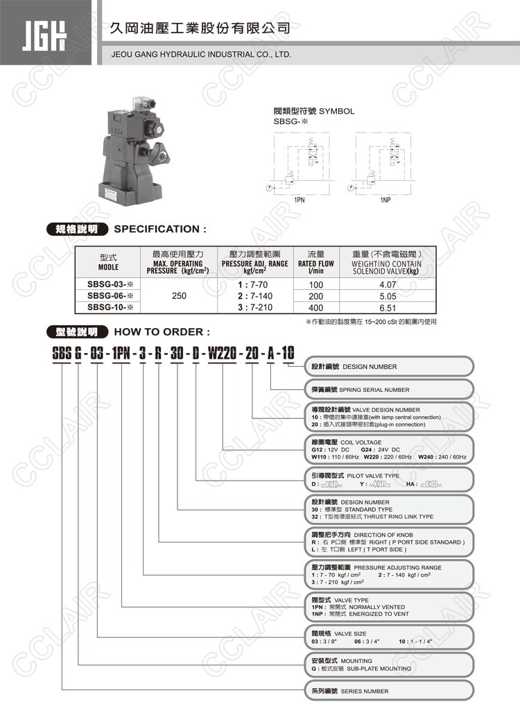JeouGang臺(tái)灣久岡,低噪音型電磁控制溢流閥SBSG-03-1PN-1-R-30-D-G12-10-A-10,SBSG-03-1NP-2-R-30-Y-W240-10-A-10,SBSG-06-1PN-1-R-30-D-W240-10-A-10,SBSG-06-1NP-2-R-32-Y-W110-10-A-10,SBSG-10-1PN-1-R-32-HA-G12-10-A-10