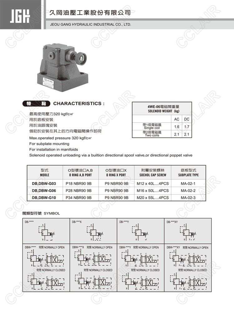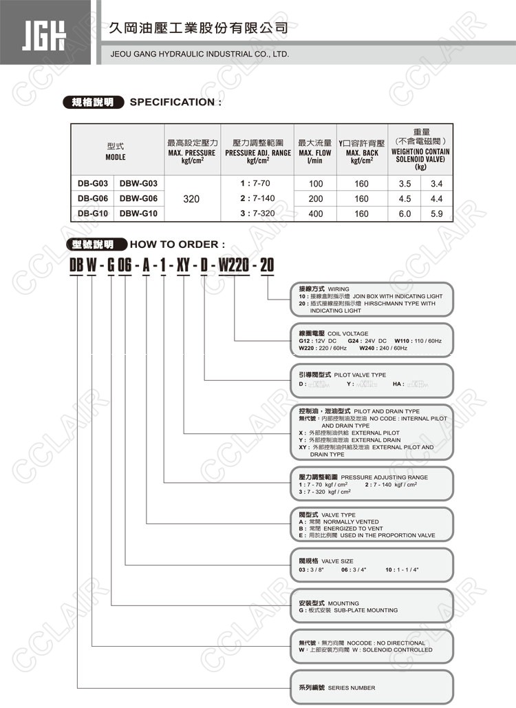 JeouGang臺灣久岡,電磁控制溢流閥DBW-G03-A-1-D-G12-10,DBW-G06-A-1-Y-Y-W220-10,DBW-G10-A-1-X-HA-W240-20,DB-G03-A-2-XY-HA-W110-10,DB-G06-A-2-HA-G12-10,DB-G10-A-2-XY-HA- W220-20,DB-G10-E-3-XY-HA-W240-10,DB-G10-E-3-XY-HA-W240-20