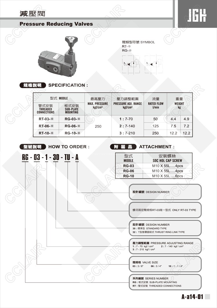 JeouGang臺(tái)灣久岡,減壓閥RG-03-1-30-TU-A,RG-03-1-32-TU-A,RG-06-3-30-TU-A,RG-06-3-32-TU-A,RG-10-1-30-TU-A,RG-10-1-32-TU-A,RT-06-3-30-TU-A,RT-06-3-32-TU-A,RT-10-1-30- TU-A,RT-10-1-32-TU-A,RT-10-2-30-TU-A,RT-10-3-30-TU-A,RT-10-3-32-TU-A