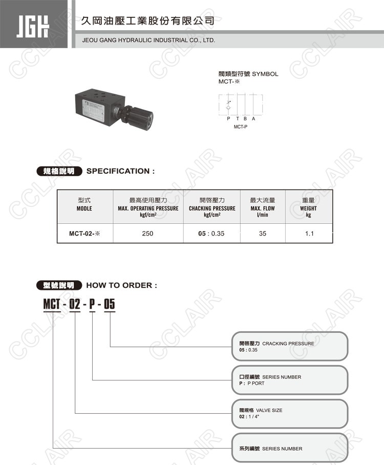 JeouGang臺(tái)灣久岡,疊加式止逆節(jié)流閥MCT-02-P-05