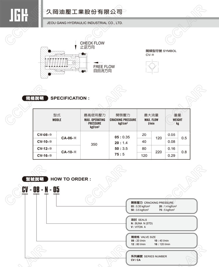 JeouGang臺灣久岡,止逆閥CV-08-N-05,CV-08-N-20,CV-08-N-50,CV-10-V-20,CV-10-V-50,CV-10-V-75,CV-16-N-05,CV-16-N-20,CV-16-N-50,CA-12-V-20,CA-12-V-50,CA-12-V-75,CA-16-N-05,CA-16-N-20,CA-16-N-50,CA-16-N-75,CA-16-V-20,CA-16-V-50,CA-16-V-75
