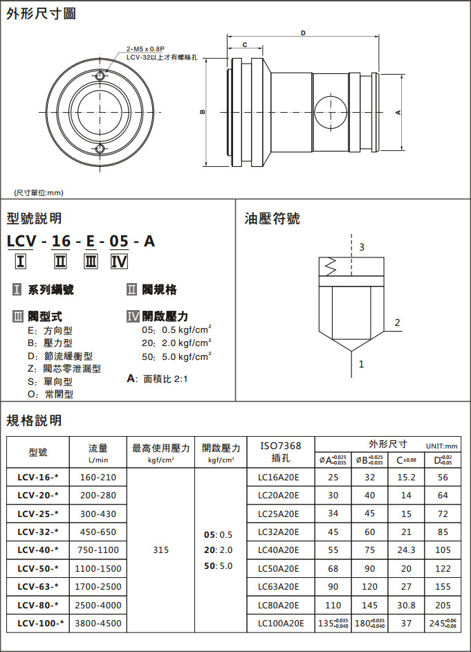 LCV-50-E-50-A,LCV-63-E-50-A,LCV-80-E-50-A,LCV-100-E-50-A,邏輯閥方向型