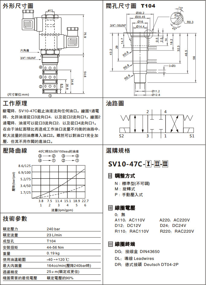 型號: SV10-47C-N-0-DG,SV10-47C-N-A110-DG,SV10-47C-N-D12-DG, SV10-47C-N-R110-DG,SV10-47C-N-A220-DG,SV10-47C