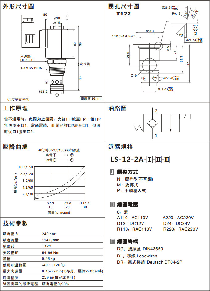 LS-12-2A-P-0-DR,LS-12-2A-P-A110-DR,LS-12-2A-P-D12-DR,LS-12-2A-P-R110-DR,LS-12-2A-P-A220-DR,LS-12-2A-P-D24-DR,LS-12-2A-P-R220-DR,兩通常閉型電磁換向閥