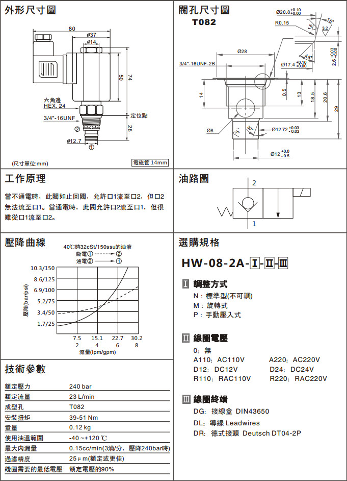 HW-08-2A-P-R110-DR,HW-08-2A-P-A220-DR,HW-08-2A-P-D24-DR,HW-08-2A-P-R220-DR,兩通常閉型電磁換向閥